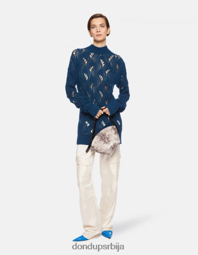 превелики џемпер са округлим изрезом и дугим рукавима. алпака вуна ажур. направљено у Италији.