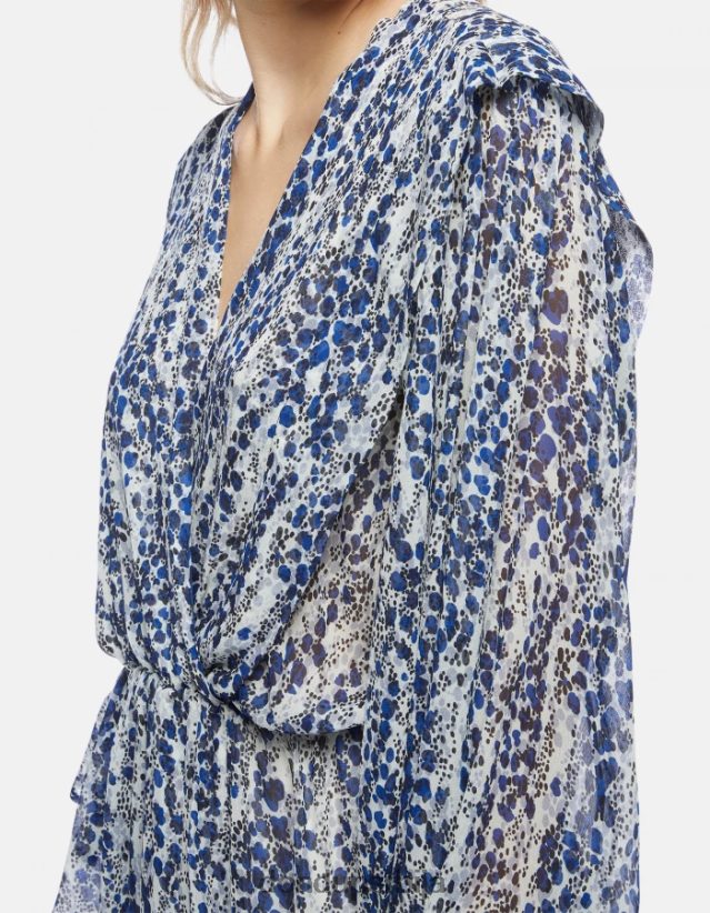 кратка хаљина редовног кроја са В изрезом, воланима напред и капастим рукавима. штампани жоржет. направљено у Италији.
